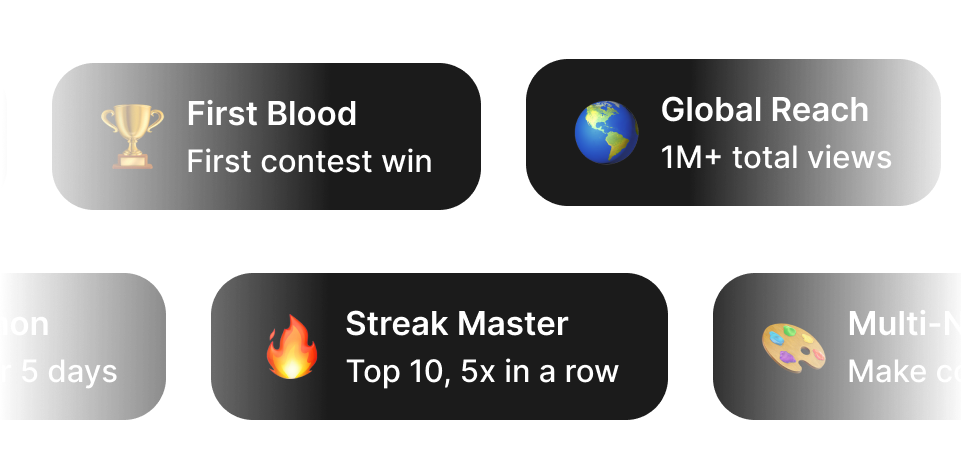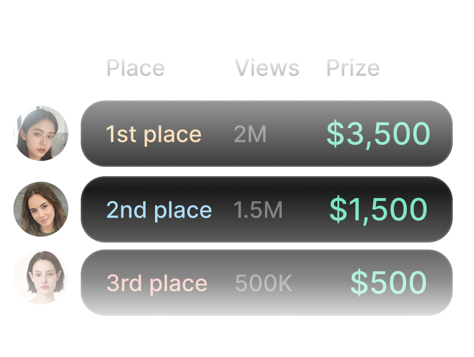 You can submit up to 4 videos per contest. This lets you test different hooks, styles, and approaches to maximize your chances of winning. Each variation is posted on your own social account.